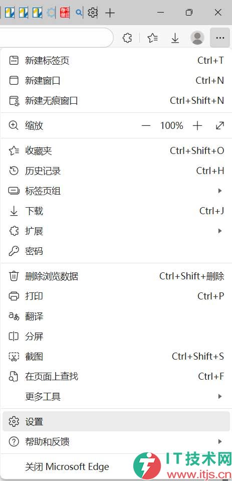 1、点击Edge浏览器右上角灰色的“...”,进入“设置”界面:
