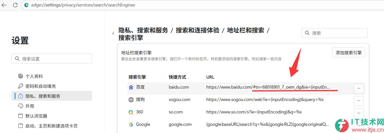 ITJS实测有效,解决Edge浏览器百度被劫持/篡改,地址后边跟这个尾巴#tn=68018901_7_oem_dg问题。